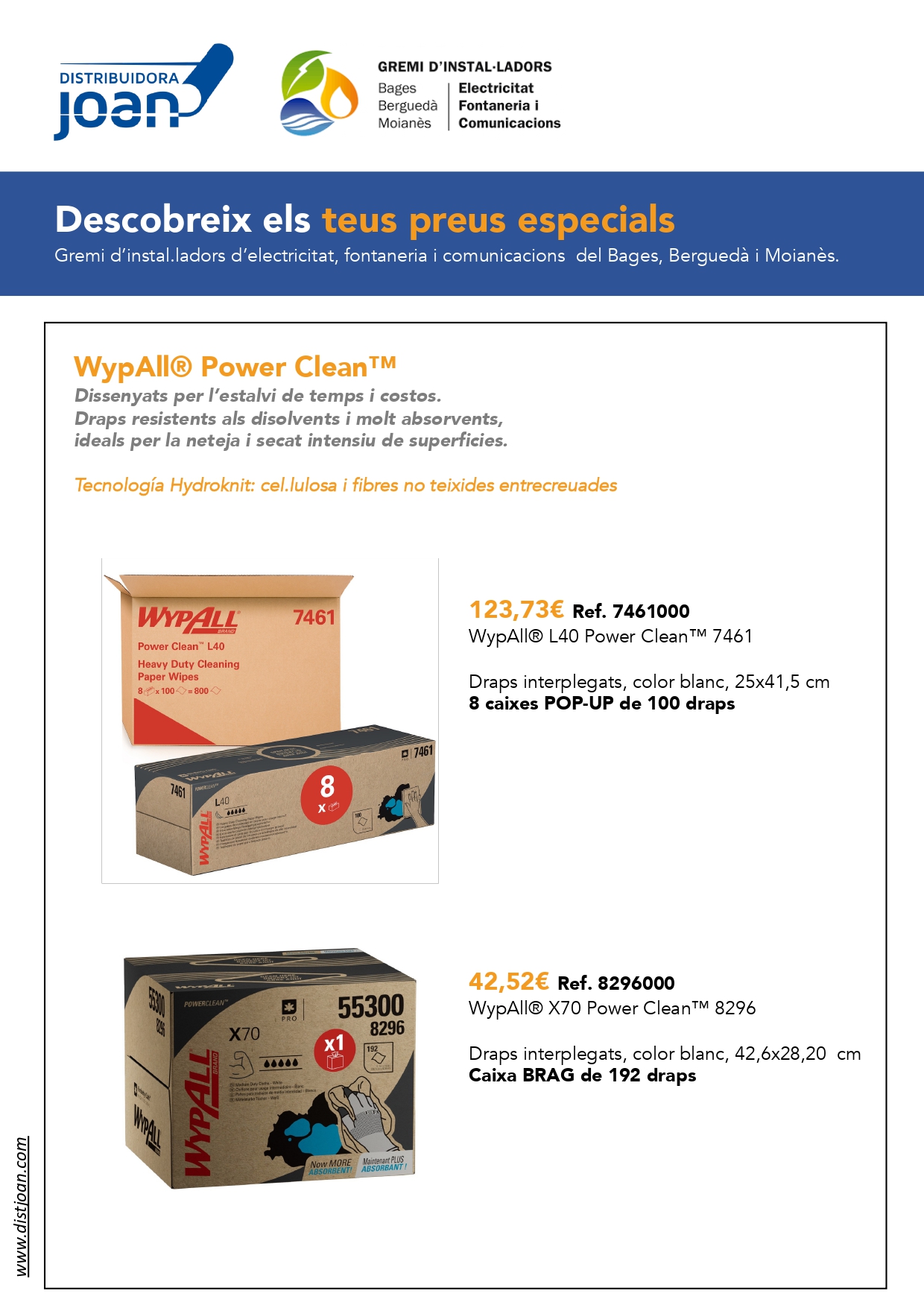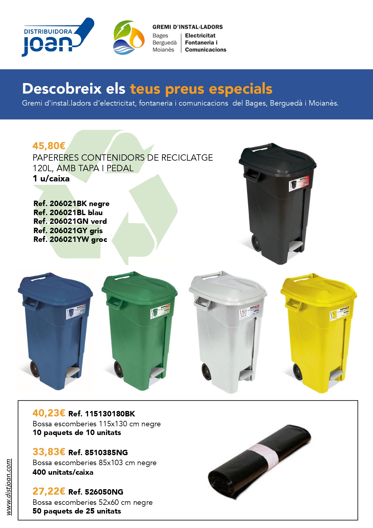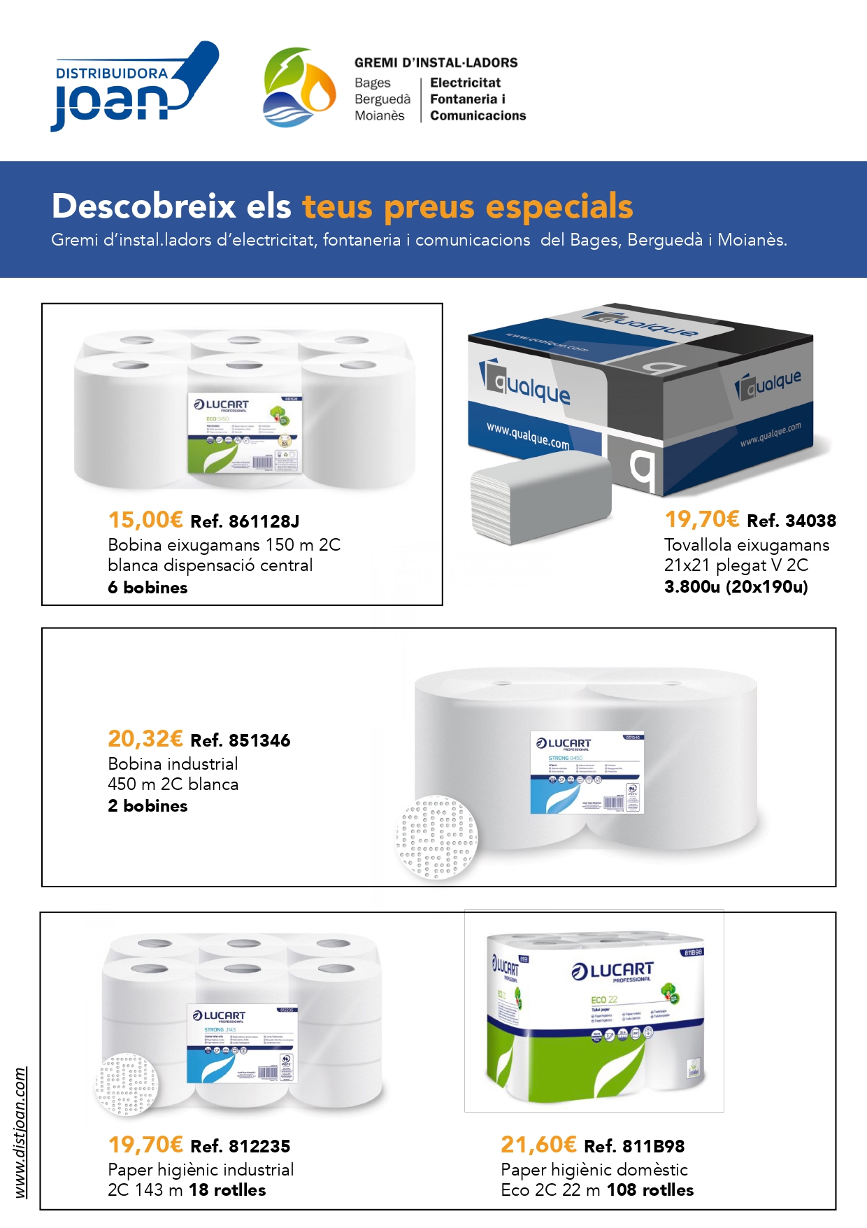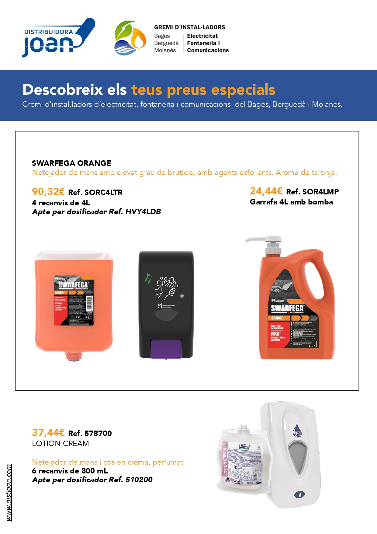 Us adjuntem aquest recull d'ofertes de DISTRIBUÏDORA JOAN, nou soci col·laborador del gremi, perquè li pugueu demanar tot aquest material amb el preu especial d'EMPRESA GBB.