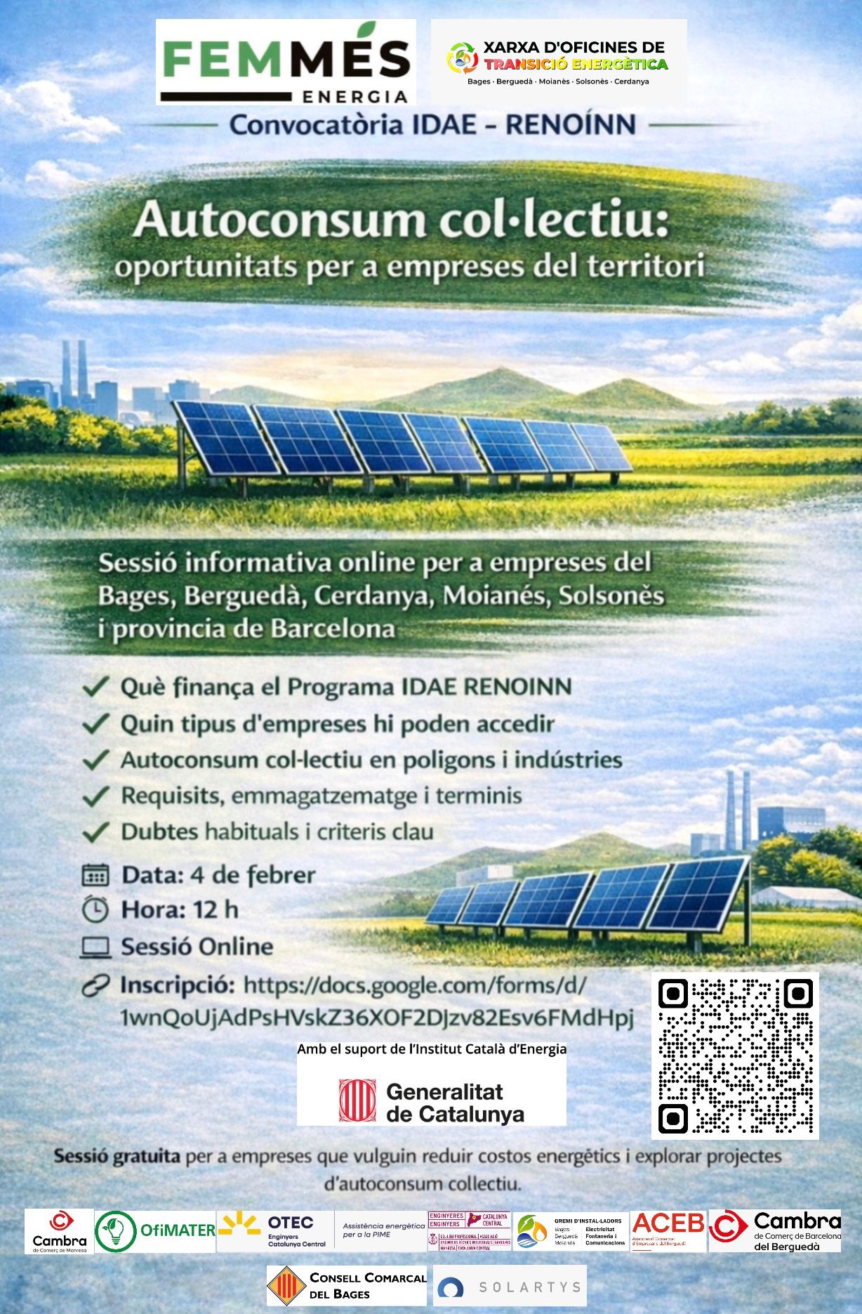 El pròxim dimecres 4 de febrer a les 12:00 realitzarem una jornada online informativa dedicada a conèixer la convocatòria RENOINN i com la podem integrar en el procés de transició energètica de les empreses. La jornada ha estat impulsada per l'Oficina de Transició Energètica del gremi juntament amb altres OTES de diferents territoris per donar-li l'impuls comunicatiu que necessita.