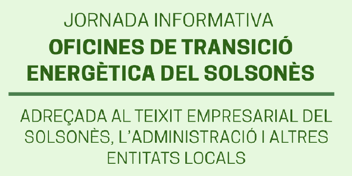 El pròxim dimarts 24 de març de 2026, de 9.30 a 11.00 h, tindrà lloc a l’Hotel Gran Sol de Solsona una jornada informativa adreçada al teixit empresarial del Solsonès, a l’administració pública i a altres entitats locals per donar a conèixer els serveis de les Oficines de Transició Energètica del Solsonès.